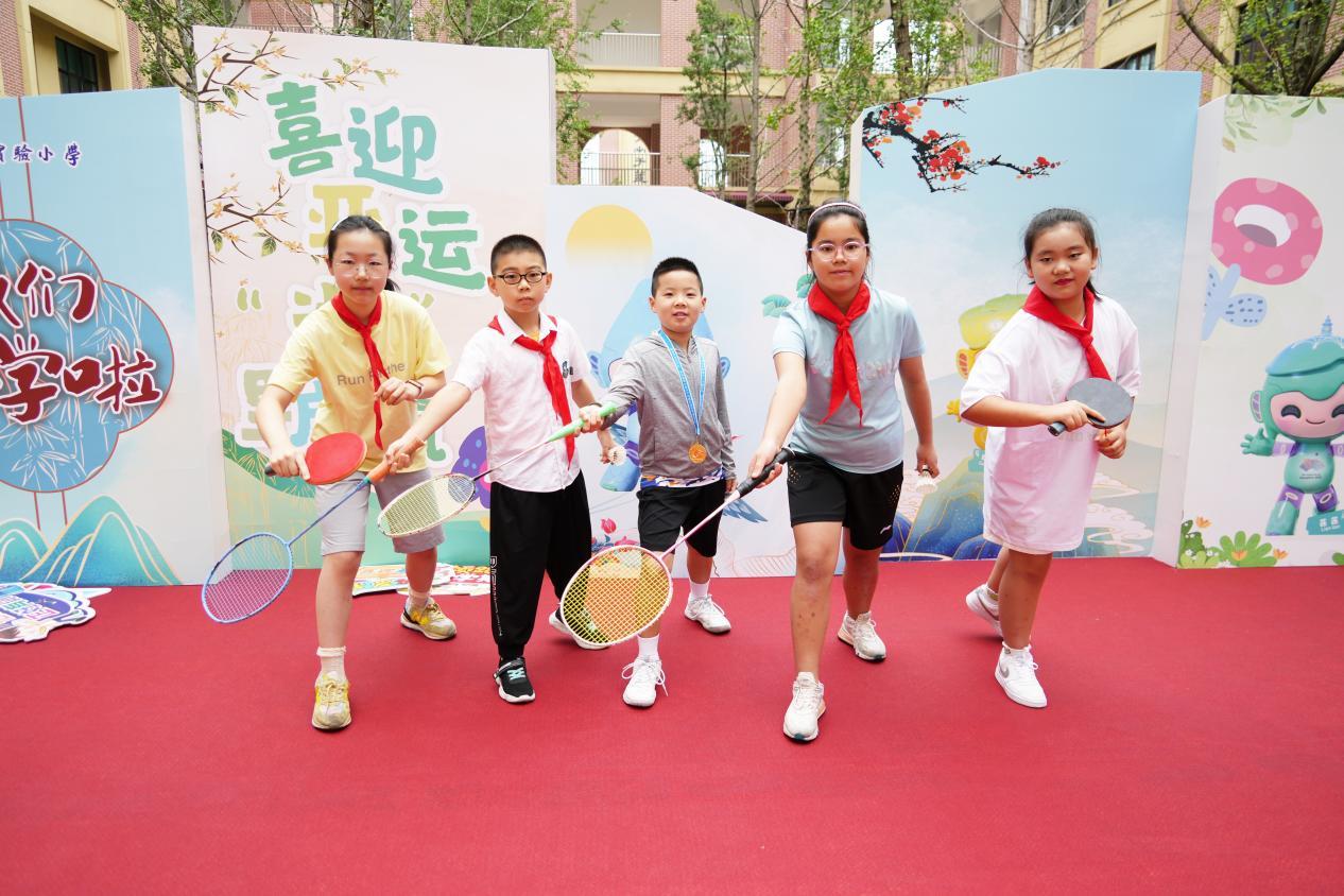 正值杭州第19届亚运会即将召开之际,杭州市春晖小学举行了以“童心迎亚运,筑梦向未来”为主题的入学仪式。作为全国“无废公众教育”试点学校,春晖的孩子们用废旧材料做成无废亚运的的创意作品,有亚运火炬、亚运奖杯、亚运吉祥物等。学校将亚运项目变成了一个个创意游戏,帆船、篮球、射箭、拳击、曲棍球、举重、乒乓球等项目,以七种不同形式的闯关赛展开,孩子们在活动中感受亚运各类运动项目的魅力,在多元的运动风格中开启崭新的学期。
