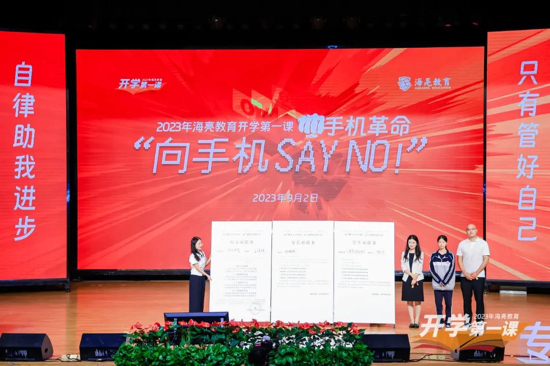 9月2日上午,浙江诸暨海亮教育园传来近千名学生的郑重宣誓声。一堂由海亮教育科技服务集团领衔、旗下超160所自有及服务学校共同参与、声势浩大的开学第一课——手机革命“向手机SAY NO!”启动。随着倡议宣读、制度发布和承诺签署,海亮教育携旗下各学校正式掀起新学年“手机革命”浪潮。海亮教育将不停追寻,努力让电子设备横跨诱惑的天堑为学子成长添翼。