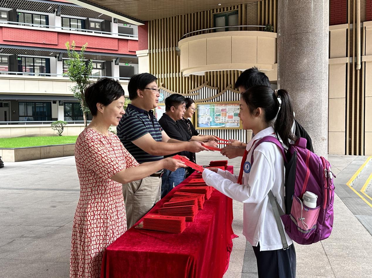 今天,杭州市风帆中学的同学们重返校园,迎来了新的学期,校领导们为同学们派发“开学红包”,用满满的祝福迎接同学们。红包里面有一份特殊的拼图七巧板和一张等待同学们填写的心愿卡。拼图完成后,是学校心理老师准备的《心海扬帆启航宝典》,有情绪宝典、人际宝典、学习宝典、家庭宝典,希望同学们阅读后能在新的学期扬起自信的风帆,坚定地踏浪前行。