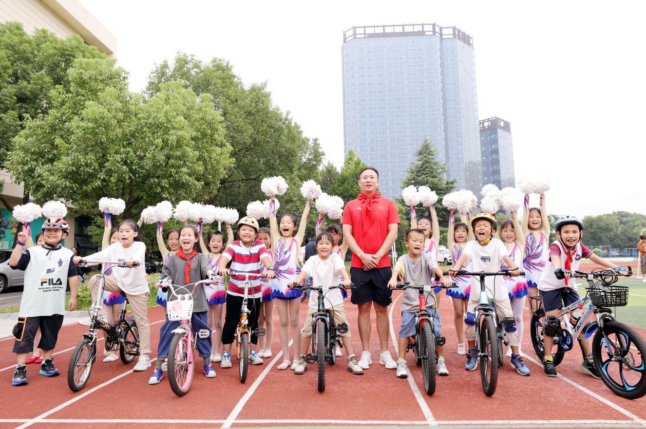 开学日,湖州市新风实验小学教育集团为同学们带来一场特殊的开学第一课,学校邀请亚运冠军李建鑫进行授课,同学们在指导下开展了一次自行车竞速赛,他们仿佛小小运动员,在操场上自由驰骋,感受运动的乐趣。