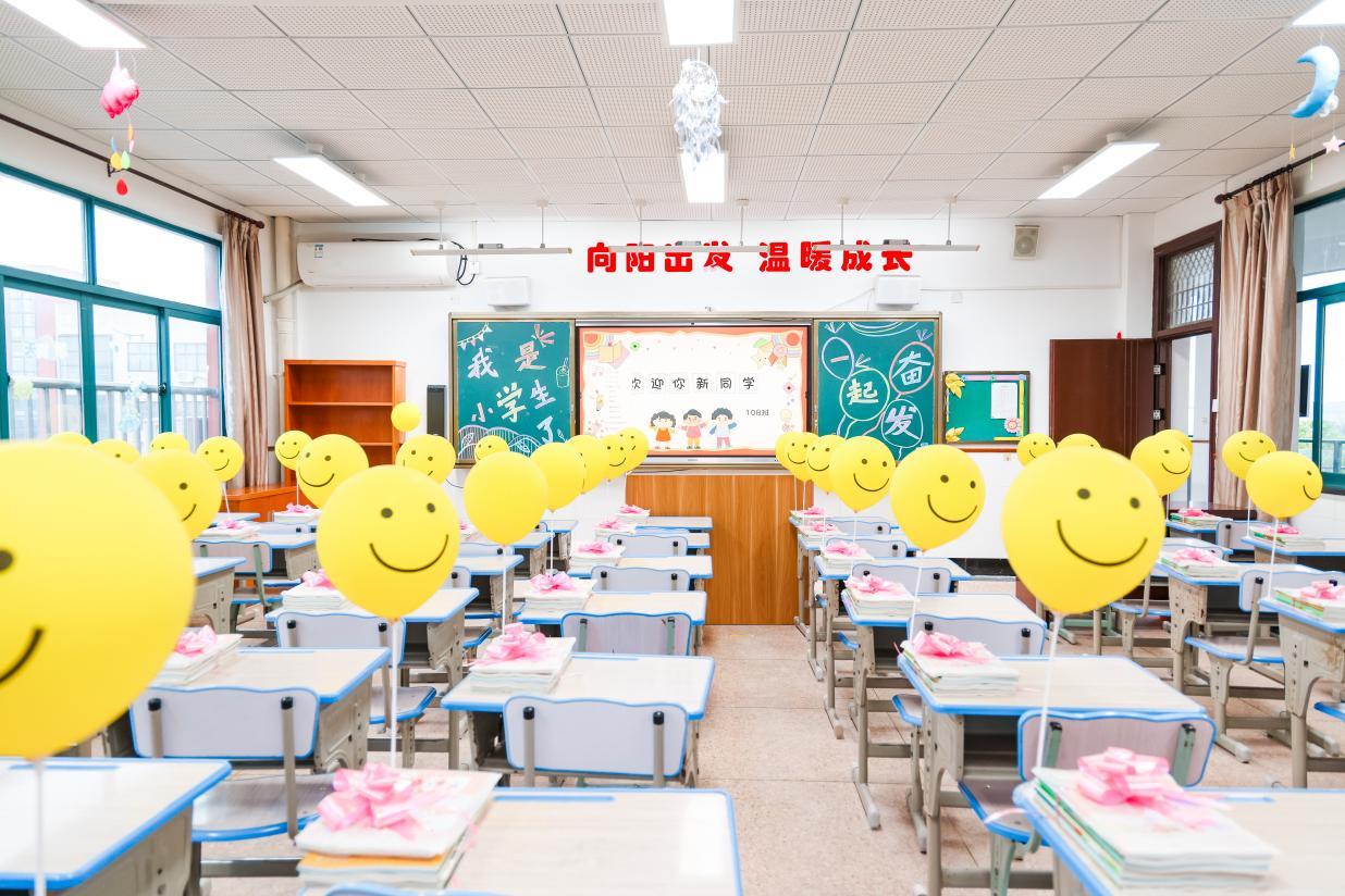 8月30日,杭州市钱塘区义蓬第一小学为一年级的新同学们精心准备了一场隆重的入学礼。寻“身份证”、领“入学礼”、迎接入学“大挑战”……仪式感、体验感慢慢!家长和孩子们一起来到班级,班主任们早已布置好教室,等待着大家,干净整洁的教室、摆放整齐的书本字典、精心布置的迎新板报、清新亮丽的气球,希望孩子们能够尽快适应校园生活。