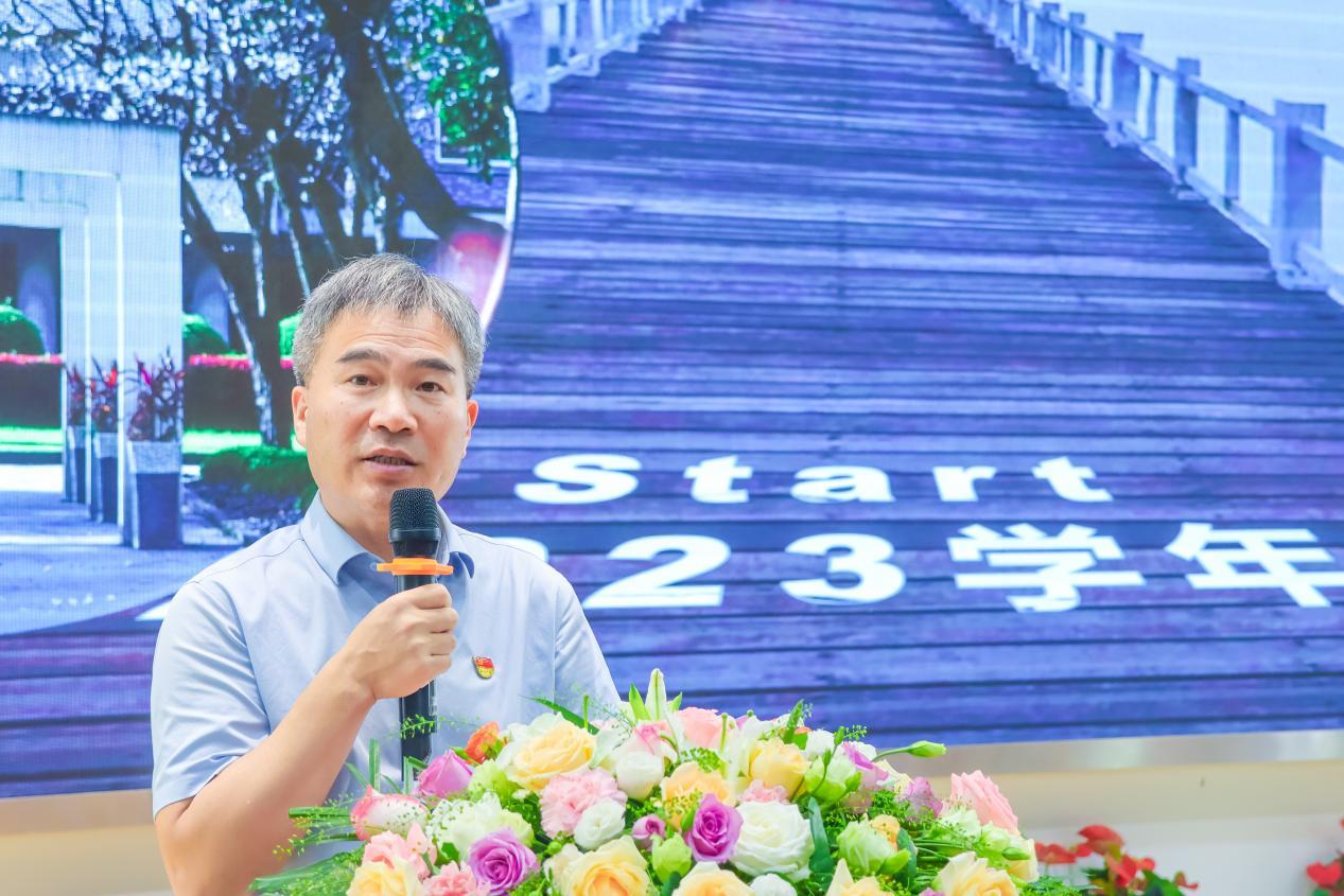 “我们希望用职业教育之光,架起过去、现在和未来之间的桥梁。我们不只是有梦想,我们要拼命地向上生长。”杭州市开元商贸职业学校校长郑效其在开学典礼上以“同爱同在,同心同创未来”为主题发言。他希望同学们能够通过杭州亚运会积极感受体育的魅力,体会体育带来的民族自豪感和凝聚人心的力量,并将此热忱投入到自己的学习和生活中去。