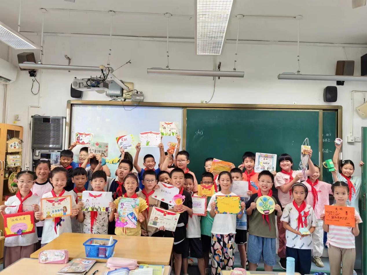 桃李争艳,师恩难忘。为弘扬尊师重教的优良传统,湖州市吴兴区八里店镇常路学校开展以“星光熠熠,感谢有你”为主题的教师节系列感恩活动。一二年级的孩子们带上手工制作的贺卡、自己的最美作业、灿烂的笑容等美好的事物与老师合影,影像留师谊,永远念师恩。三四年级的同学们亲手制作一份手工作品,在动手制作中铭记恩师情,在手工作品中寄托感恩意。五六年级的学生们试着用画笔描绘出心目中的温馨场景或者恩师形象,用笔触绘制老师的辛勤付出和对老师的感恩之情。