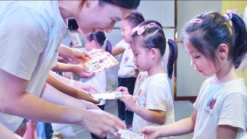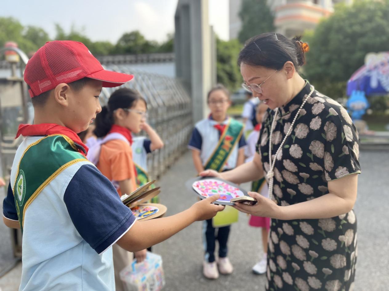 迎着晨光和孩子们的笑脸,瑞安市塘下镇新华小学的老师们步入校门口的红毯之路一一来到展台前签到并合影留念。在趣味无穷的投掷飞镖活动中,每一位老师都收获了一份教师节盲盒礼物,获得独属于自己的一份惊喜和幸运。课间,同学们也纷纷向老师送去祝福,一张张手绘贺卡,一件件纯手工作品,一个个“云祝福”视频,带给老师们满满的贴心与感动。