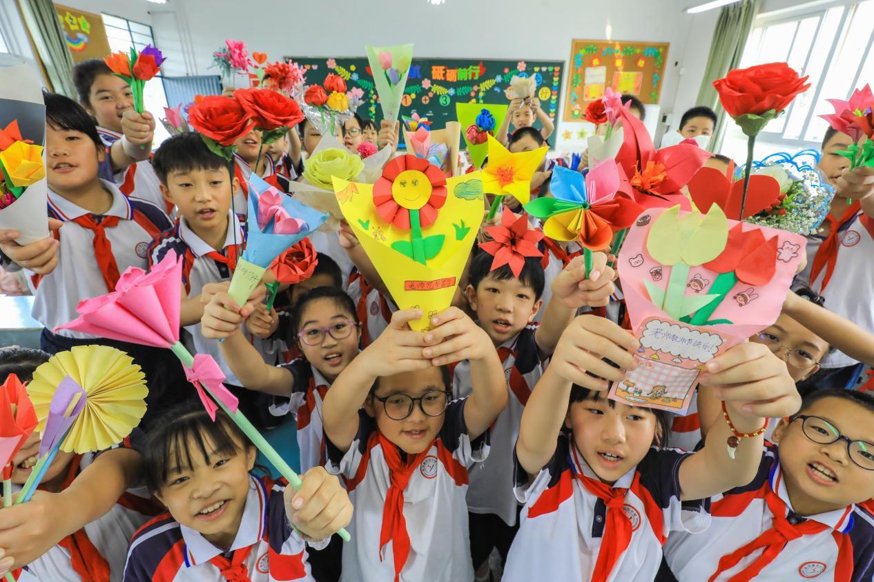 特别的爱送给敬爱的你,杭州市钱江湾小学的孩子们用童心童趣祝老师们节日快乐。一张张充满爱意的卡片、一颗颗创意有趣的爱心、一朵朵色彩缤纷的手工花、一张张独一无二的奖状,孩子们用灿烂的笑容、真诚的祝福来表达对老师们的感谢。