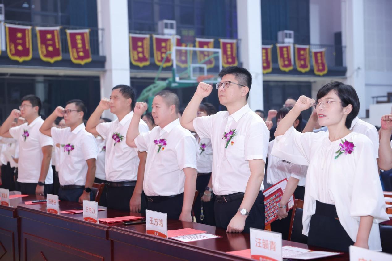 秋菊溢彩,桃李芬芳。在这个收获成果又播种希望的美好季节,瑞安市塘下镇第一中学庆祝第39个教师节大会伴随着芬芳的九月如期而至。新入职的青年教师在全体教职工的见证下,高举右手,庄严宣誓。随后,又见证了学校领导班子为受表彰的老师颁奖。希望青年教师从身边的榜样中汲取力量,树立“躬耕教坛、强国有我”的志向和抱负。