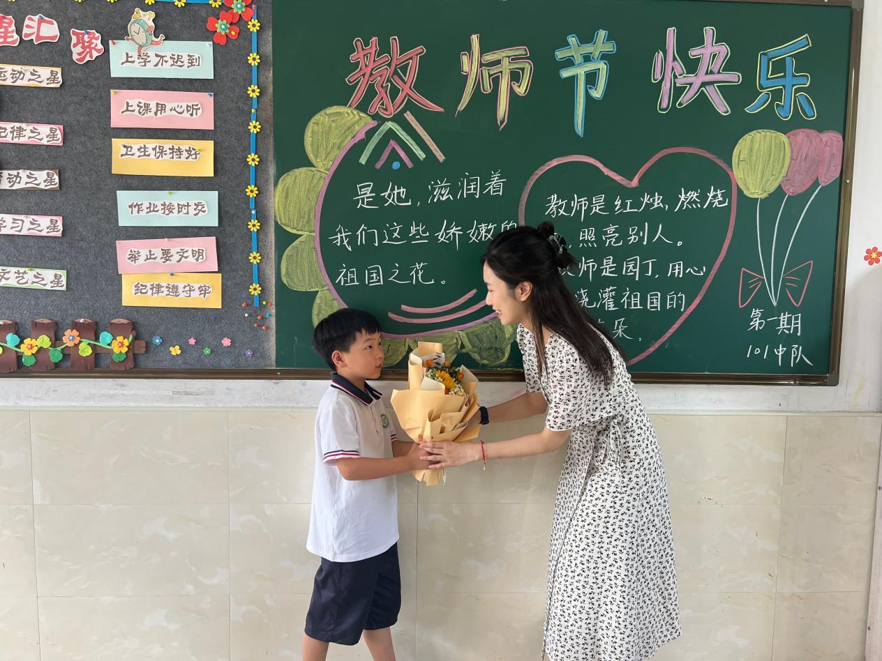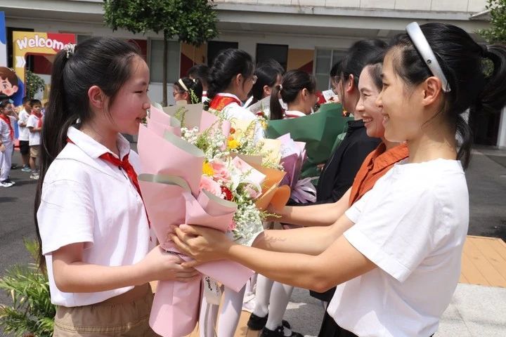 湖州市织里实验小学教育集团的孩子们一早就将自制贺卡送到了老师手里。新入职的老师们收到孩子们的贺卡心情格外激动,纷纷表示,“十年前,我在这里学习,从织小走出去;现在,我在这里工作,又回到了织小!”下午,两位老师准备了鲜花赠给了自己的两位老师,感谢恩师不仅传授给他们知识和经验,更传递了认真负责、一丝不苟的敬业精神,自己也要像恩师们一样,成为一位心中有爱、眼中有光的老师,传承老师的精神,为教育事业贡献自己的力量。就像那首歌唱的,“长大后,我就成了你。”希望织小的教育事业代代相传,延续不断发展的美好未来。