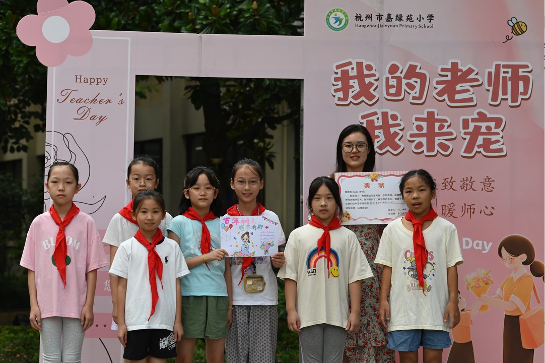 金桂飘香,硕果累累,伴随着新学期的开启,又一年的教师节如约而至。为了让学生感受到老师的爱与付出,激发学生对老师的尊敬、感激之情,杭州市嘉绿苑小学教育集团开展了“我的老师我来宠”教师节主题活动。同学们为老师献上亲手制作的手工花,朵朵花儿暖师心;为老师定制了“专属奖状”,夸夸自己的老师。在凉爽的秋日里,孩子们用自己的热情温暖了老师们的心。