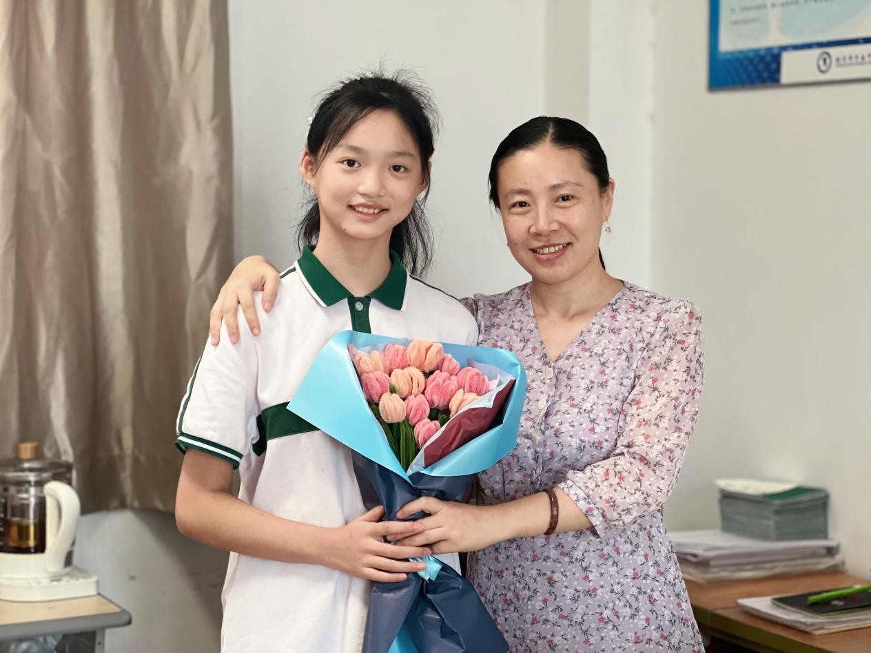 彩纸、卡纸、颜料……这些最简单的材料在湖州市弁南中学的同学们手中,变作一张张贺卡和一支支手工花。他们回忆着老师的一颦一笑、一举一动,拿起手中的彩笔细心勾勒,将自己心中的老师展现在画面上,再写上对老师的祝福,表达诚挚的敬意。礼物虽小,但情意浓厚,同学们送上的不仅仅是一份祝福和感恩,更是一颗颗真诚、纯粹的心灵和一份份赤诚、浓烈的热爱。