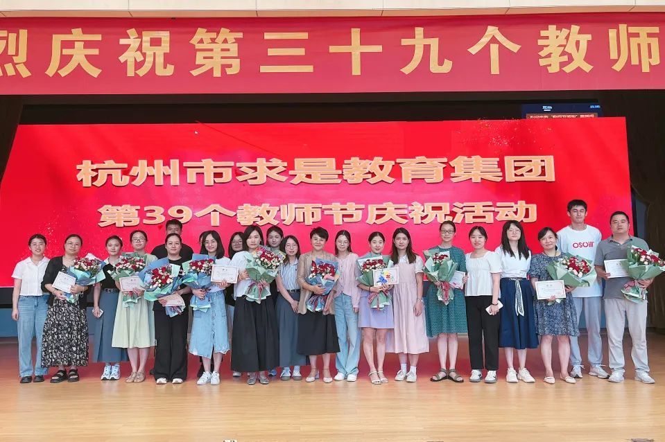 一支粉笔书春秋,两袖春风化桃李。在过去的这一年里,杭州市求是教育集团全体教职工并肩同行,用敬业和奉献收获累累硕果。庆祝活动上,集团对第22届“求是奖教基金”一二三等奖、优秀奖获奖团队与获奖教师进行了表彰,并宣读新一届师徒结对名单。一纸聘书,师徒之约,徒弟们为师父送上鲜花,这是求是教师精神的传承,更是人民教师使命的赓续。