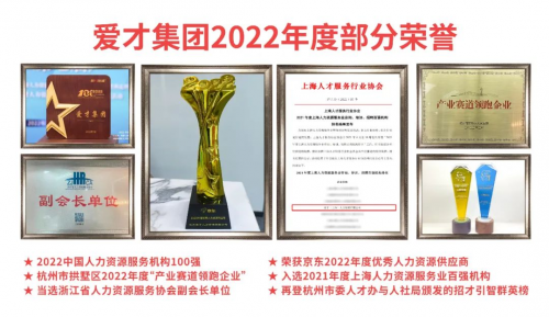 作为一家人力资源全产业链深度开发的大型集团,自成立以来,爱才集团已在上海、杭州、北京、广州等20多个城市设立分支机构,现可为市场提供外包服务、人才招聘、人事服务、薪税服务、产业园运营等产品,服务客户覆盖互联网、餐饮、快消、智能制造、医药、新能源等行业头部客户,集团自有管理团队500多人,2022年营业收入达21.38亿元。凭借强大的交付能力、专业的服务水平,爱才集团屡获殊荣:荣获浙江省五星级人力资源服务企业、杭州市拱墅区政府颁发的“产业赛道领跑企业”、杭州市委人才办与人社局颁发的2022招才引智群英榜、浙江省人力资源服务协会副会长单位、中国人力资源服务机构100强、2021年度上海人力资源服务业百强机构、京东2022年度优秀人力资源供应商、叮咚买菜“2021年度全国供应商管理大会安心伙伴奖”等。