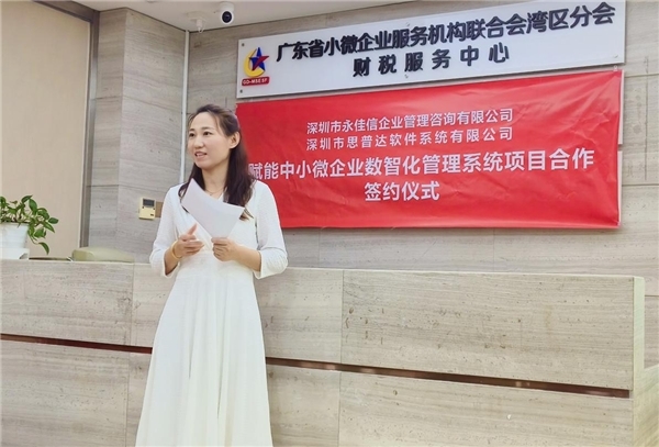2023年10月10日,深圳市永佳信企业管理咨询有限公司和深圳市思普达软件系统有限公司共同举行了“赋能中小微企业数智化管理系统”项目合作签约仪式。