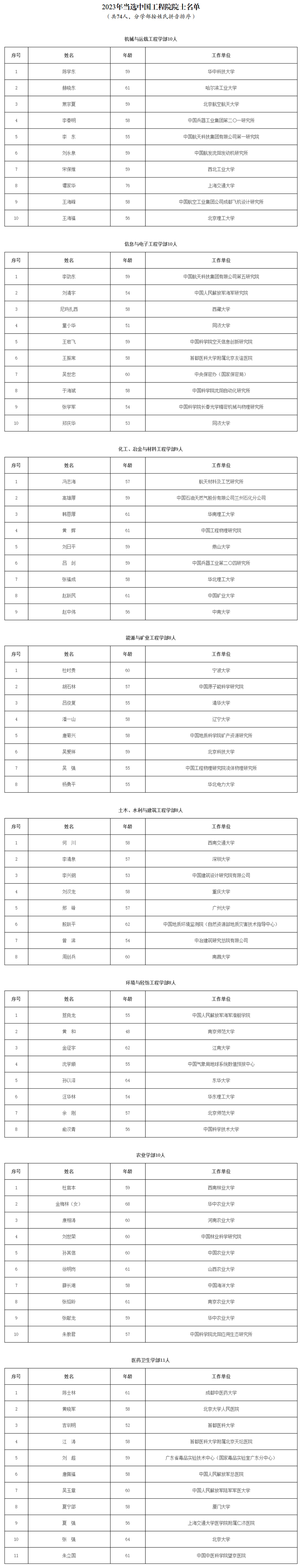 关于公布中国工程院2023年院士增选当选院士名单的公告