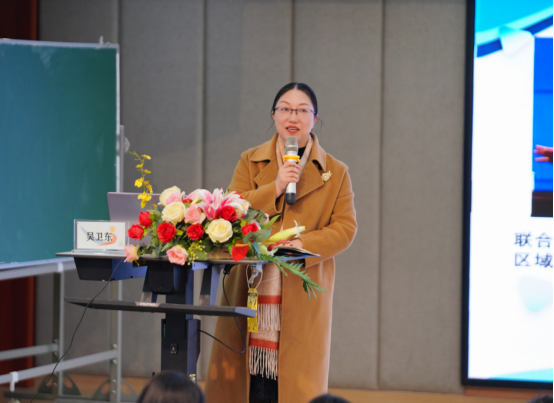 劳动大教研组长金璐老师进行《以劳涵美,融合五育共成长》的主题发言。金老师展示了集团劳动教研团队研发的主题图和操作图,展现了“图谱式”跨学科融合的劳动课程具体实施过程,强化劳动教育,促进学生全面发展。