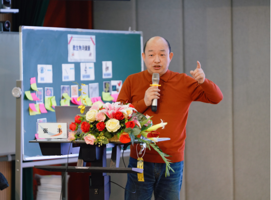 张丰副主任作了题目为《探寻“学习之变” 落实学生立场》的专题报告。张主任以丰富课堂教学案例导入,引导教师们关注“学生立场”进行教学设计,提出“学习活动设计先于教学过程设计”的观点。同时阐述了中小学教学改革与提高教育质量的探索的三阶段,分别是教学过程管理的精细化、转变学教关系“学为中心”教学改革以及素养立意的教学改革。希望老师们能重新理解学习的定义,促使学生真正思考,真正学习,真正掌握知识。
