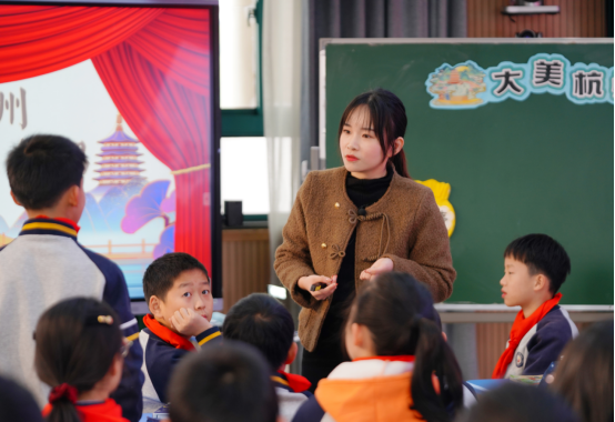 文三街小学的孙杨老师为大家带来了《大美杭州我代言》语文跨学科课堂展示。孙老师在“大美杭州我代言”的活动主题下,以“向新加坡结对学校介绍杭州”为任务驱动,融合了科学和美术学科的知识能力,创作了精美的代言海报,撰写了有趣的代言词,为大家展现了生动的跨学科课堂。