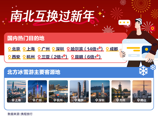1月15日,携程发布《2024春节旅游市场预测报告》。报告显示,即将到来的春节8天假期,将是2024甲辰龙年首个出游高峰。截至1月13日,春节假期(2月9日至17日)国内游、出境游、入境游订单均大幅增长。北方冰雪游、南方温泉避寒游“南北互换”是国内游热门,春节期间旅游订单同比增长超7倍;东南亚、港澳、澳新是出境游热门目的地,国人出国过年的同时,越来越多外国人来感受中国春节,出境游、入境游订单均同比增长10倍以上。