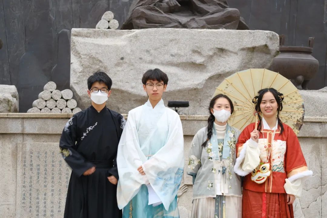有没有一种可能穿越回千年前,与诸子百家对话呢?元道广场诸子百家像前,百家学派的历史渊源与时代演变,身着汉服的同学们娓娓道来。生涯探索游戏妙趣横生,同学们现场答题,了解当下最火的职业人格类型。