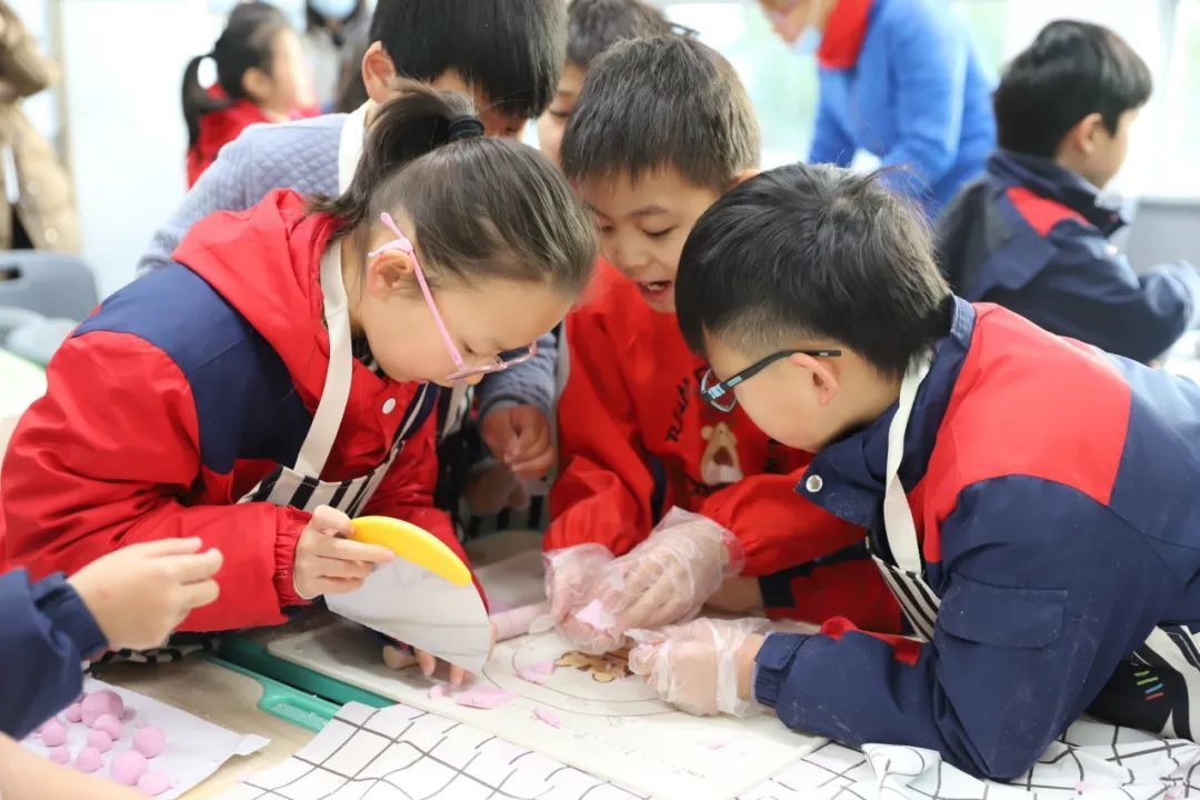 老师为小组提供了做汤圆的材料和工具,并播放提前录制的做汤圆的视频,呈现了其制作步骤。此外,老师们亲身示范,细致指导学生,把时间充分还给学生,让孩子们在动手中发现问题、解决问题。