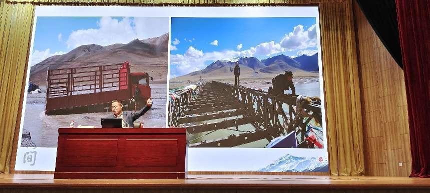 在当天的讲座中,他首先结合传唱已久的自创歌曲《故乡之上》,谈了自己的“故乡观”——他的出生地浙东天台山是“小天台”,而他奉献了12年的“世界屋脊”西藏是“大天台”;无论是很多人所谓第二故乡还是余光中先生《乡愁》中“海峡两岸”的故乡,无论多么深情动容,在某种意义上都是平面的、先后的,爱的力度取决于山海的跨度海拔的高度,而常处于“天空在我脚下”的青藏高原的他,眼中的故乡是立体的、哲学的、圣洁的,西藏从地理上也是在所有人的故乡之上——无论在浙江,还是西藏,胸中不变的是“月亮,只有天空一个家”的乡情。