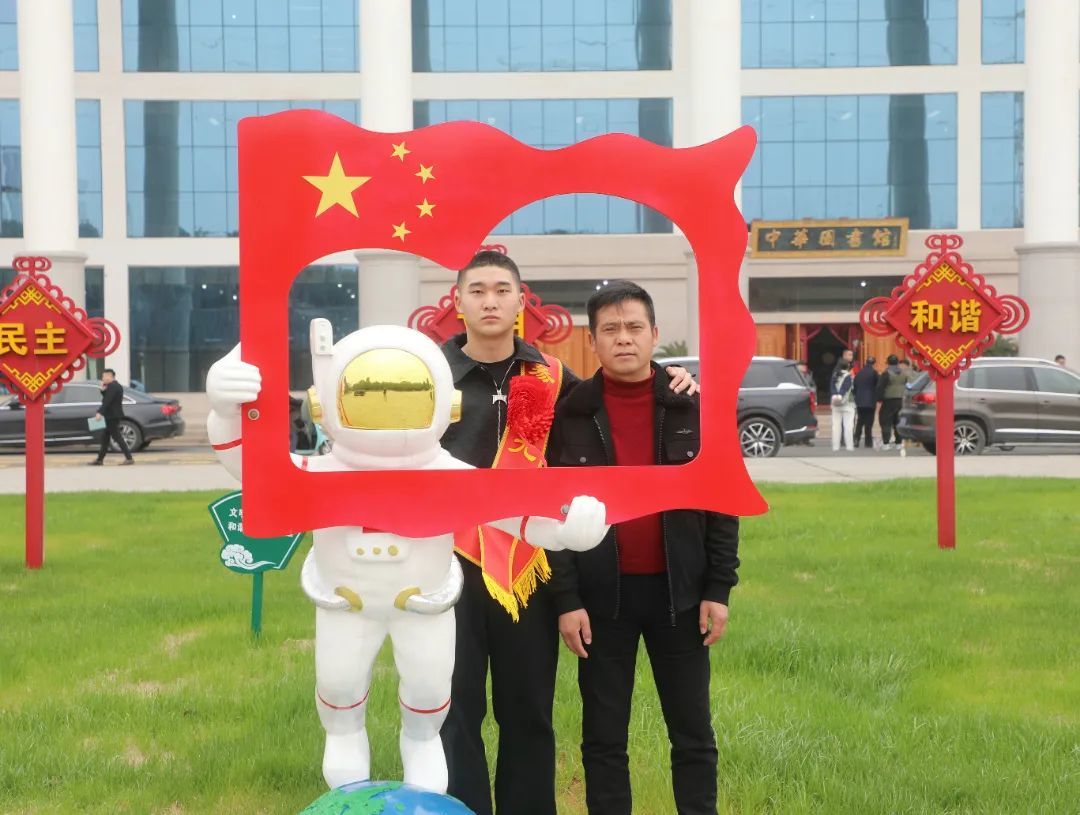 座谈会结束后,校领导与入伍学生和家长分别合影。