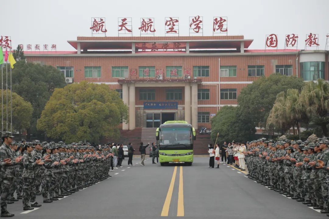 中午时分,学校在理工大厦前举行了热烈的欢送活动,军乐队吹奏起优美的乐章,教官大队和师生代表列队欢送,向入伍学子致以最热烈的掌声和最美好的祝福,祝愿他们在军营中百炼成钢,书写最美的青春华章,养成吃苦耐劳、勇敢和坚韧的军人品格,为实现中国梦、强军梦贡献智慧和力量。(图/郭桃辉 章文睿 任佳慧