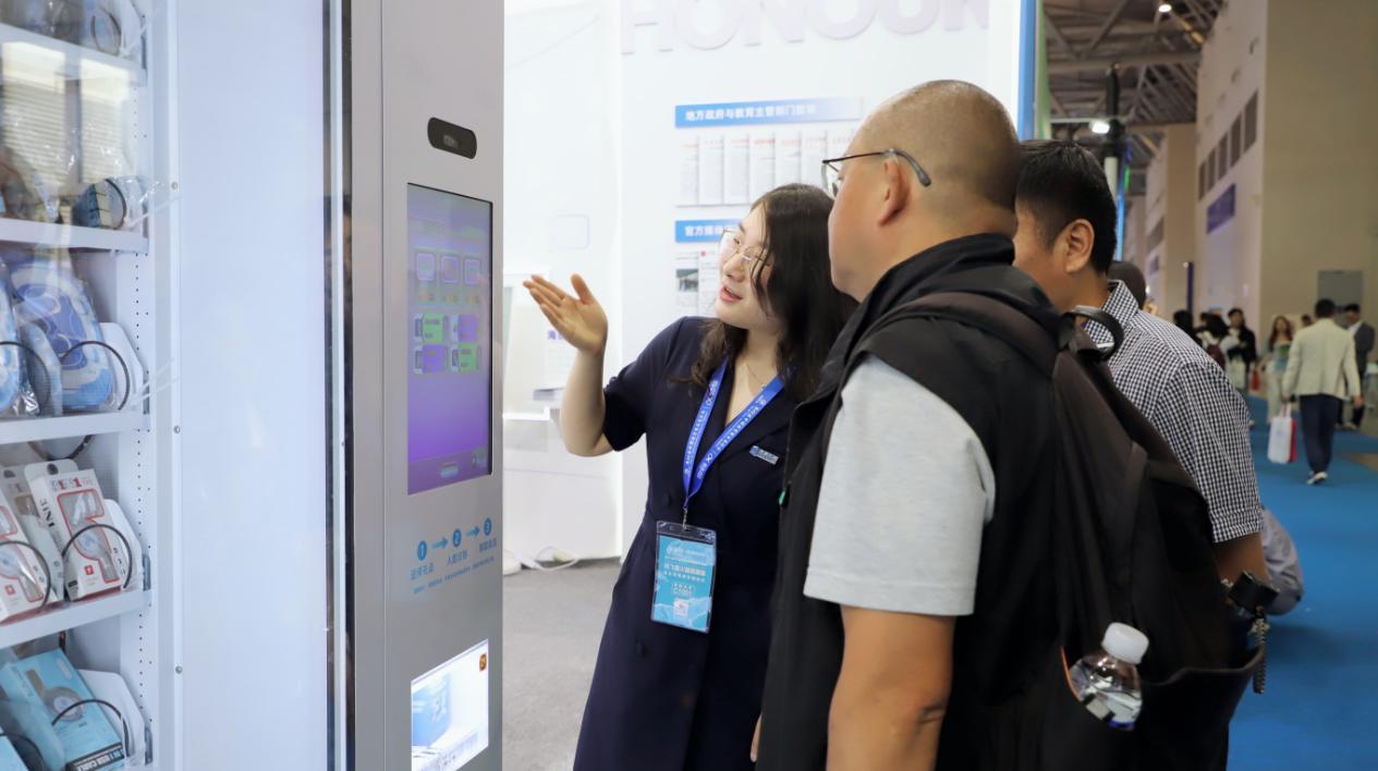 现场,积分柜兑换互动吸睛无数,参展观众在深度体验产品的同时,也能收获惊喜。积分柜与综合素质评价产品“星未来”打通,是海亮科技软硬件深度结合的典型案例。学生们可以使用“五育”积分,兑换虚拟和实物两种不同类型的奖品,自己“赚钱”自己花,潜移默化地激励学生自主提升综合素质。