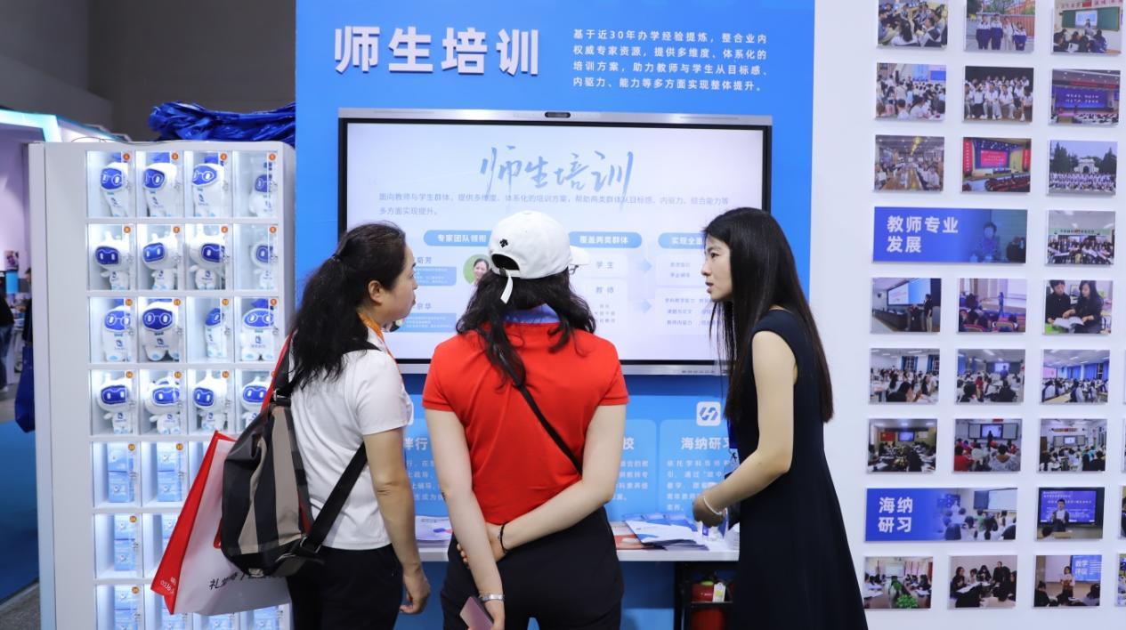 中央电教馆培训中心、新疆教育管理信息中心、吉林教育信息中心、江苏宿迁经开区教育局等数十个来自全国各地的教育局、电教馆、教育装备中心的考察团,纷纷走进海亮科技展位,细致了解各板块产品及服务,并与各个产品负责人进行深度交流。