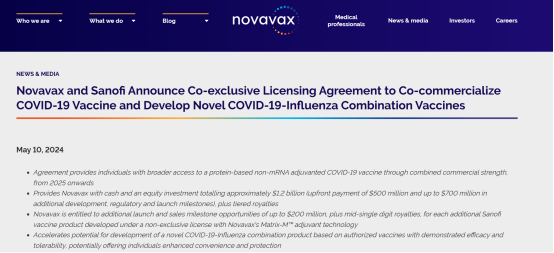 此外,诺瓦瓦克斯医药还将从赛诺菲销售的新冠疫苗以及针对冠状病毒和流感的组合疫苗中获得特许权使用费。对于赛诺菲使用Matrix-M佐剂开发的每种产品,诺瓦瓦克斯医药还有权获得高达2亿美元的额外启动和销售里程碑付款以及特许权使用费。赛诺菲还将持有诺瓦瓦克斯医药不到5%的股份。