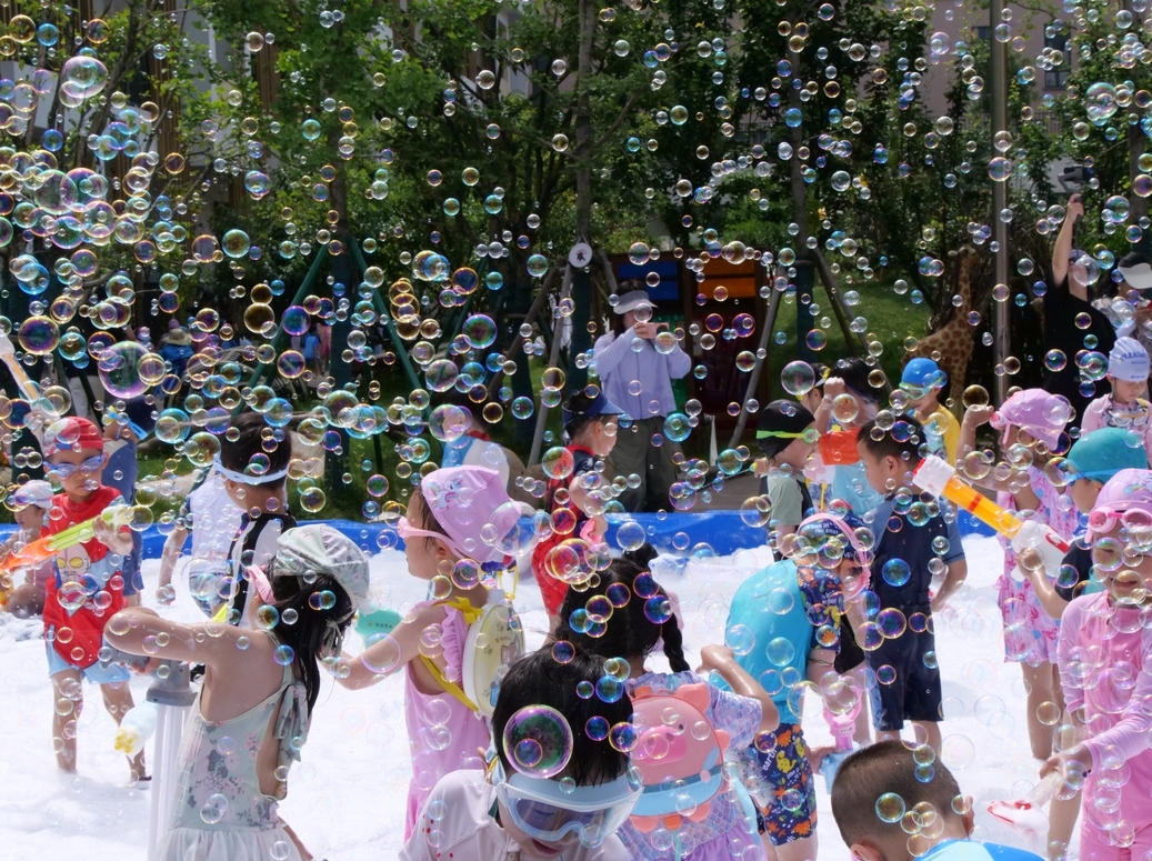 在这个属于孩子们自己的节日里,绍兴市柯桥区六一幼儿园开展了“嗨嗨夏天”欢乐节。伴随着热血动感的音乐节奏,操场上顿时变成了欢快的海洋。孩子们摇身一变,成为了萌萌的水生生物,像一群从海洋童话中走出来的小可爱。有的宝贝在泡泡池中享受泡泡,有的宝贝开始了打一场肆无忌惮的水仗,有的宝贝则是和小伙伴进行水上乐园挑战赛,大家都沉浸其中,纵情享受一场夏季狂欢。从定格的画面感受到了孩子们纵情享受清凉,在欢呼、在奔跑中尽情欢笑。