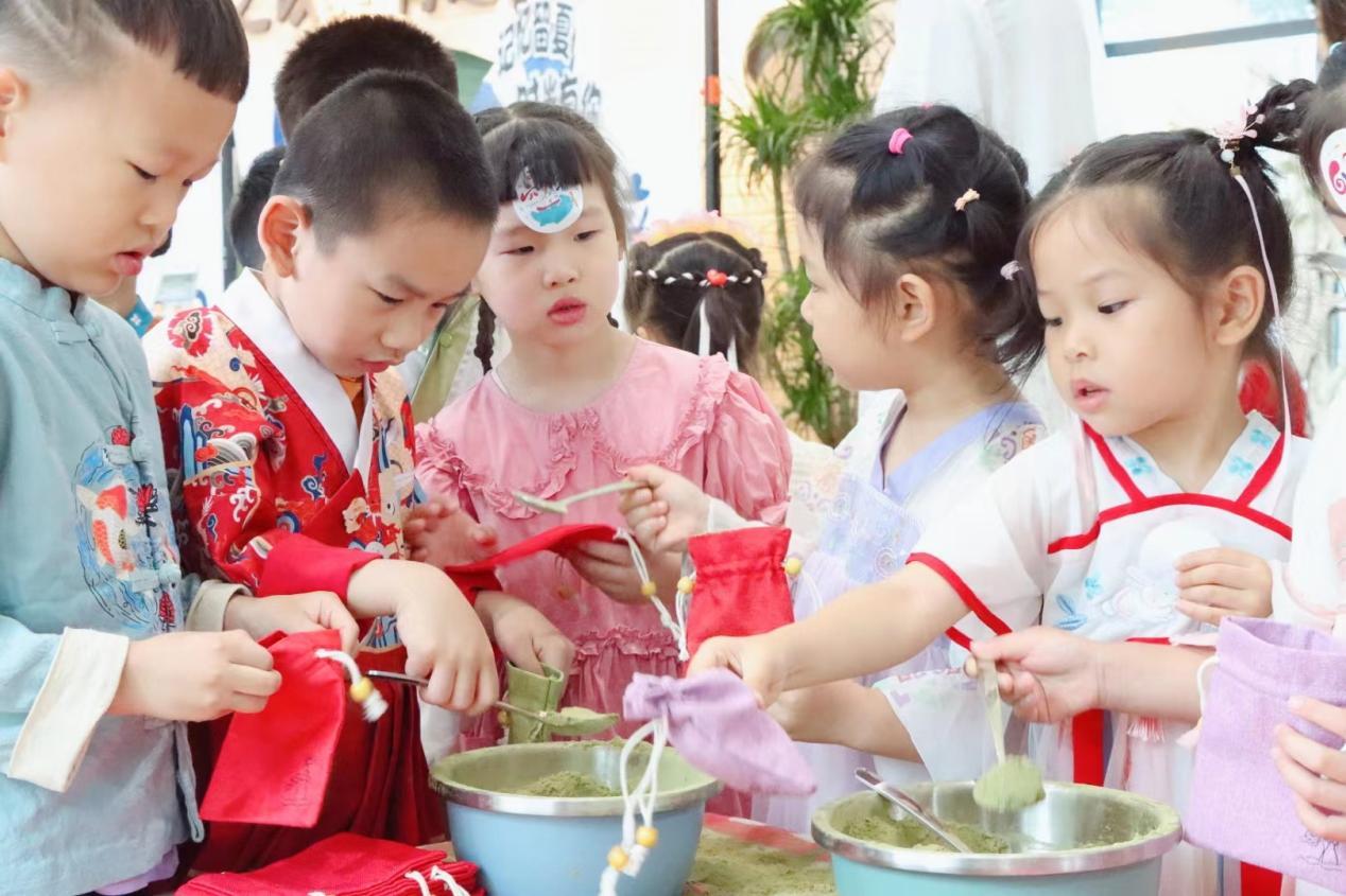 六一儿童节是一个充满欢乐和童趣的节日,杭州市钱塘区景苑幼教集团在“真·美”课程理念的实施下,拓展传统文化游戏内容,本次六一庆祝活动设计以幼儿“宋艺时代”“宋韵市集”“宋食有味”三大板块相结合的六一庆典活动,游戏项目包括宋韵茶趣、驱蚊公社、拓印小铺、泥不溜鳅、奇妙脸绘、非遗簪花、欢乐套龙虾等。