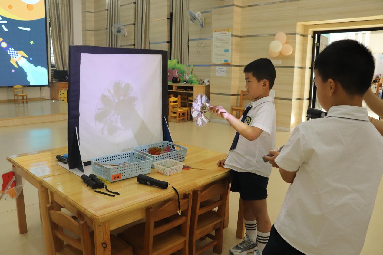 在第74个国际六一儿童节到来之际,湖州市吴兴区浮玉幼儿园迎来了第四届“STEAM+妙想天开”庆六一活动。伴随着现场热烈的气氛,各班通过视频介绍、现场展示、实物体验等方式进行项目发布。有的孩子通过一朵花、一块布、一把锤子,敲敲打打,用最简单的方式,收获一幅幅精美的敲染作品;有的孩子通过树叶、勺子、羽毛、瓶盖这些材料探索让风车转起来的方法;还有的孩子以“漆”为画笔,制作了一把把独一无二的漆扇……活动现场热闹纷繁,精彩不断!