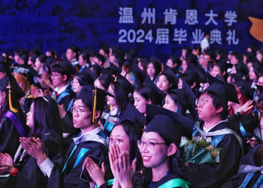 6月7日,温州肯恩大学2024届毕业典礼在瓯海奥体中心隆重举行。今年正值学校设校十周年,学校迎来了2024届800余名本硕博毕业生,其中包含了首届9名博士毕业生,这代表着温州肯恩大学朝着国际化、高水平目标更进一步。典礼还邀请了2000余名家长现场观礼,见证孩子的毕业荣耀时刻。