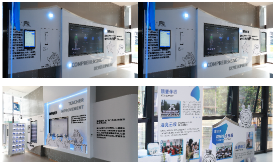 据介绍,展厅内设多个展区,涵盖各类教育教学场景,包括数智五育、家校共育、智慧教学、教师提升、师生培训等,充分展示了湘湖数字校园魅力和未来发展潜力。