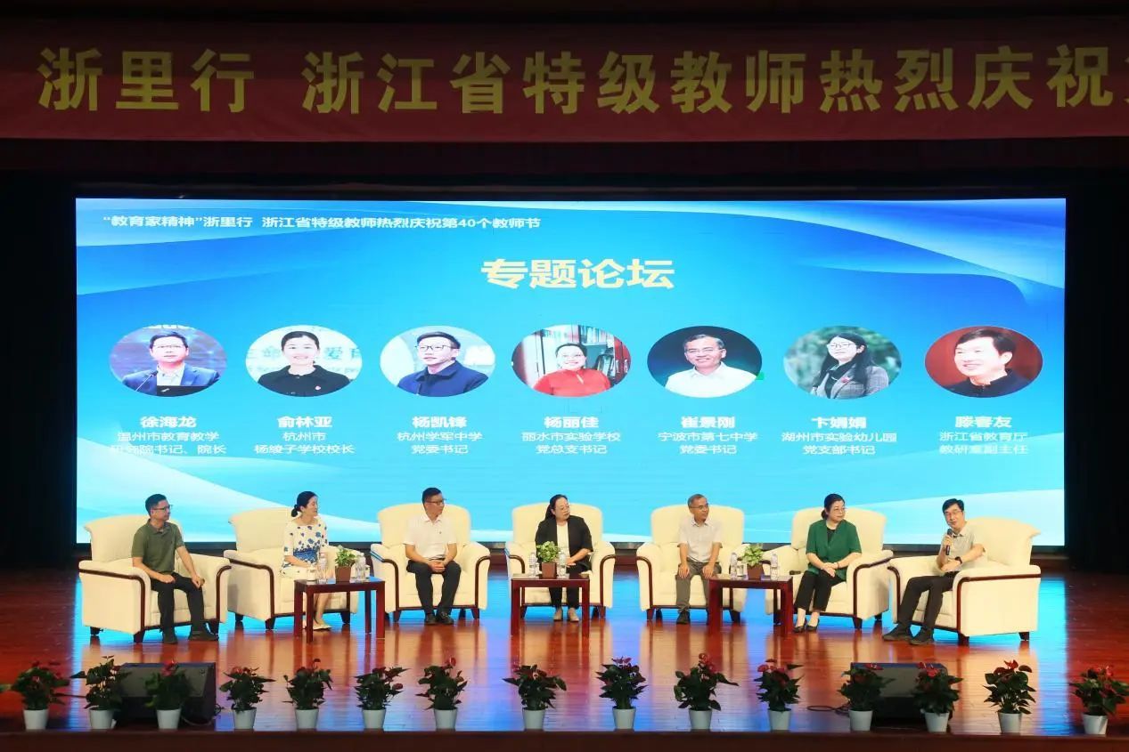 8月27日上午,浙江省特级教师庆祝第40个教师节活动在杭州市学军中学紫金港校区礼堂内举行。活动主题为“教育家精神浙里行”,老中青特级教师代表齐聚一堂,以主题发言和沙龙论坛的形式,分享他们对教育家精神的认识和践行教育家精神的经历。
