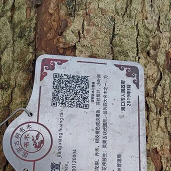 记者看到,倒伏的这棵海南黄花梨树干上还贴有一个由海口市人民政府于2019年3月出示的国家古树名木铭牌,内容显示,这是一棵降香黄檀(别名黄花梨,位列四大名木之一,为国家二级保护植物),为蝶形花科·黄檀属,树龄为60年。