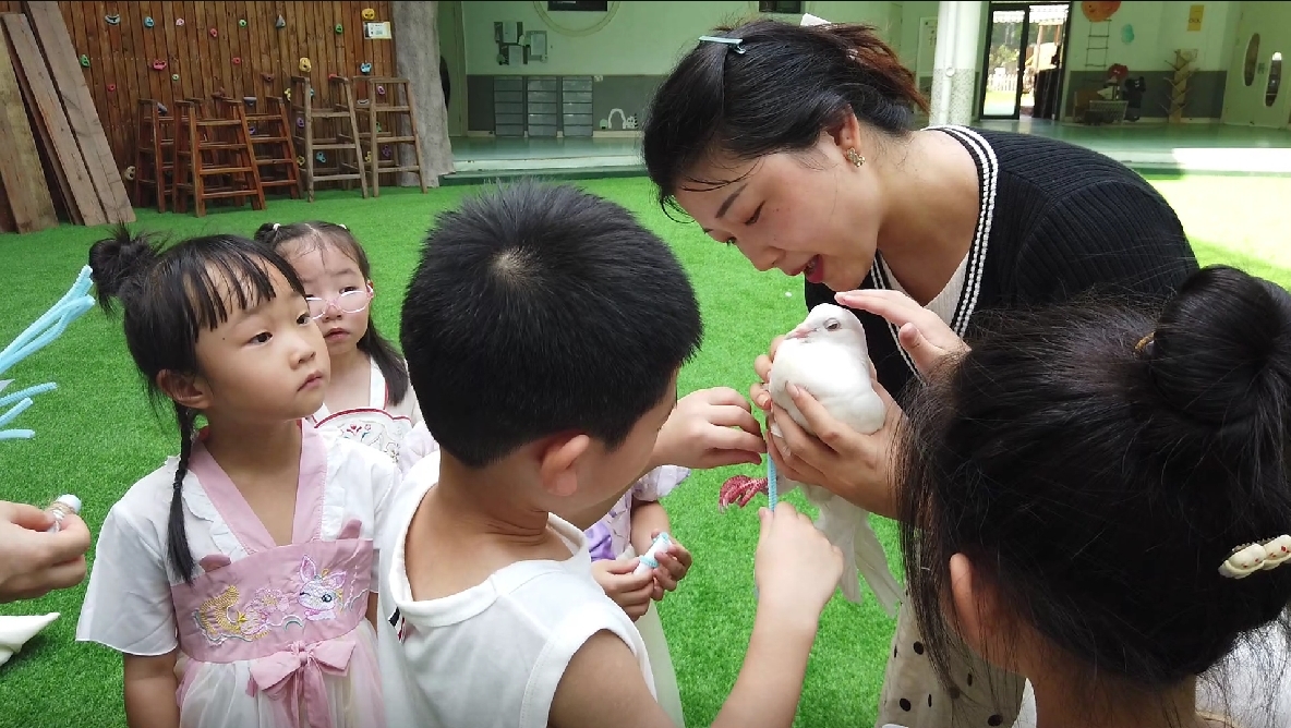 一岁一中秋,一家一平安。在老师的带领下,杭州市钱塘区启源幼儿园的小朋友们通过飞鸽传信的方式感受中国的传统文化。“云中谁寄锦书来,雁字回时,月满西楼。”孩子们把写满贺词的纸条绑在鸽子身上,让飞鸽传书捎去他们诚挚的祝福。
