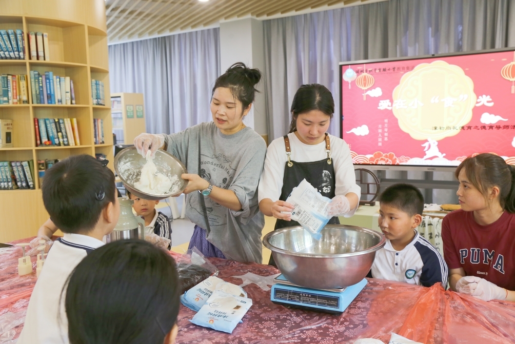 中秋节是中华民族的传统节日,中秋节吃圆圆的月饼寄托着人们对团圆的祝福与追求。在中秋节到来之际,湖州市织里实验小学教育集团举办“爱在小‘食’光”活动,邀家长志愿者共同参与。大家戴上手套,沉浸于月饼制作的乐趣中。从和面到成型,每一环节都充满欢声笑语。看着自己亲手完成的月饼,孩子们满脸喜悦,表示:“我以前只是吃过月饼,但是从来没有做过月饼。今天自己亲手做月饼,让我知道了做一样食物是多么的不容易,我以后一定会好好珍惜。”