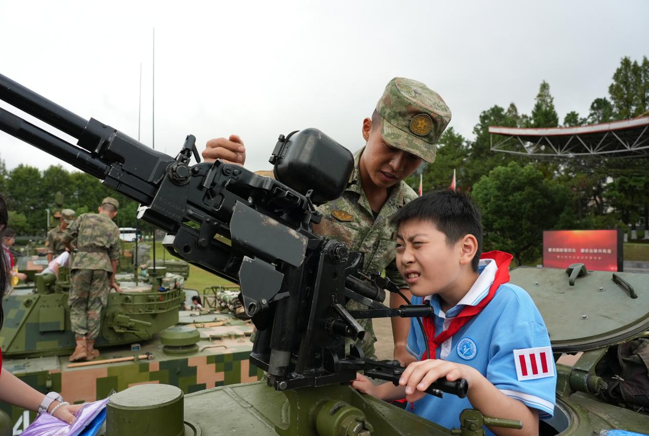 无人机迅疾升空、破障车扫雷破障、步坦密切协同向“敌”纵深阵地发起冲击……陆军第72集团军某旅组织的军营训练场上硝烟四起,枪炮声此起彼伏,激烈的实战场面令现场学生惊叹连连。