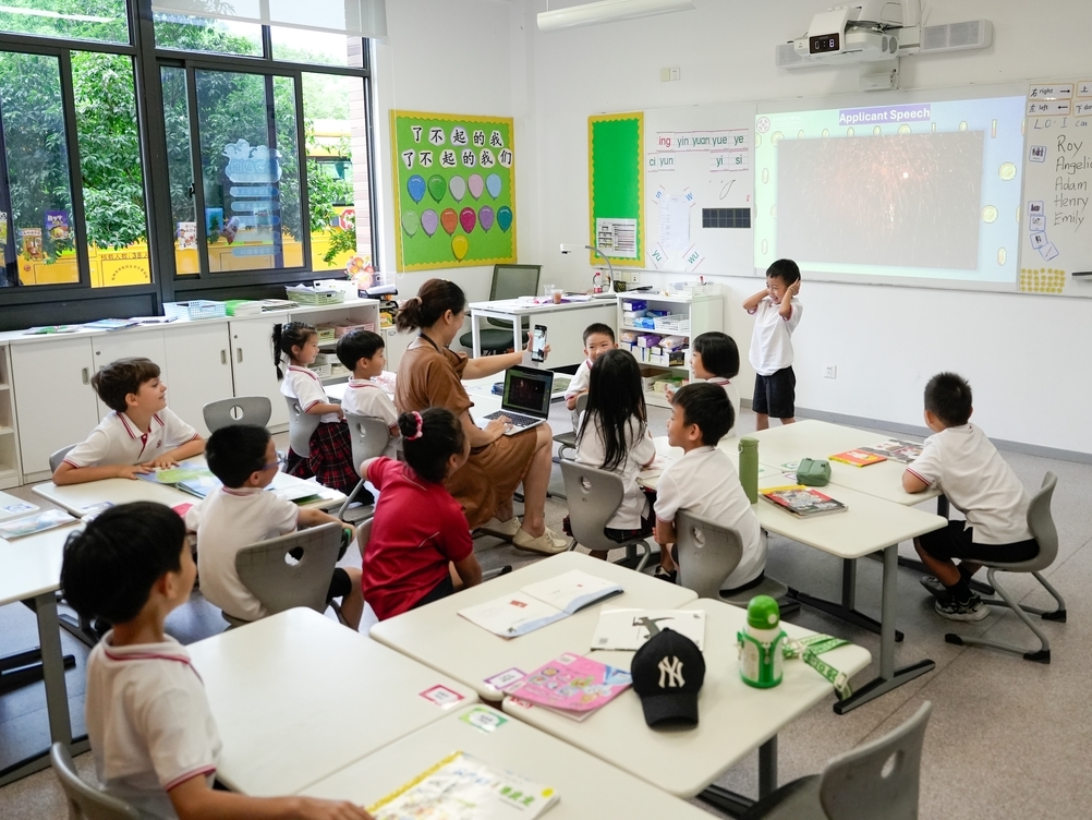 早在上个学期,学校就已经启动了幼小衔接项目。新学期开始后,我们以一个月的“一年级幼小衔接计划”帮助孩子们完成角色的转变。孩子们从熟悉大校园开始,在老师的引导下逐步尝试自己整理物品,遵守课堂纪律,培养交友习惯,学会设定目标。从能力到知识,全方位成为一名小学生。