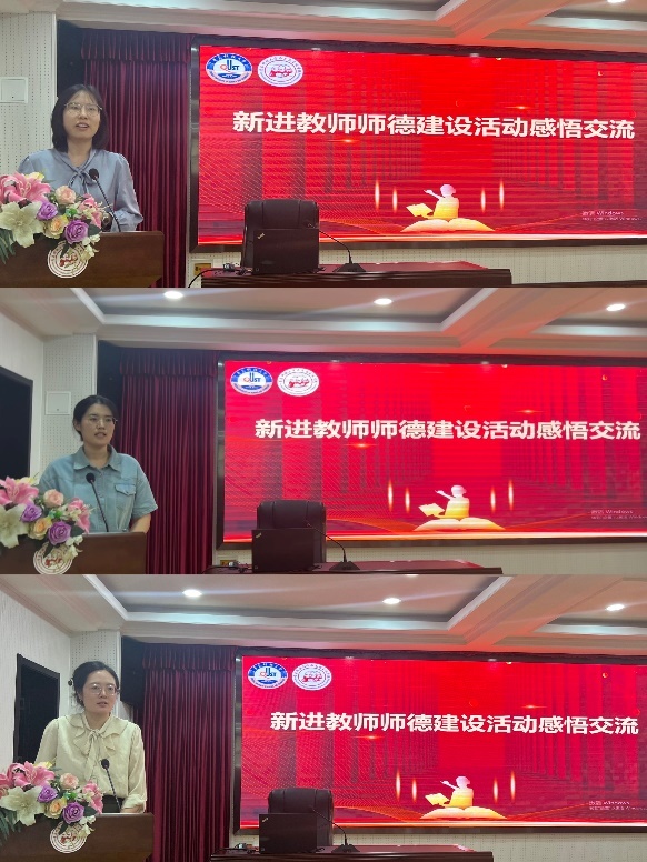 随后,新入职教师王硕、曹丽莹、匡佳慧、韩荣卿、姜欣分享了自己对于本次师德师风活动的感悟。他们表示在今后工作中要做到坚定理想信念、陶冶道德情操、涵养扎实学识、勤修仁爱之心,不断提升自己的专业素养,努力做一名有着“躬耕教坛、强国有我”志向与抱负的教育工作者。