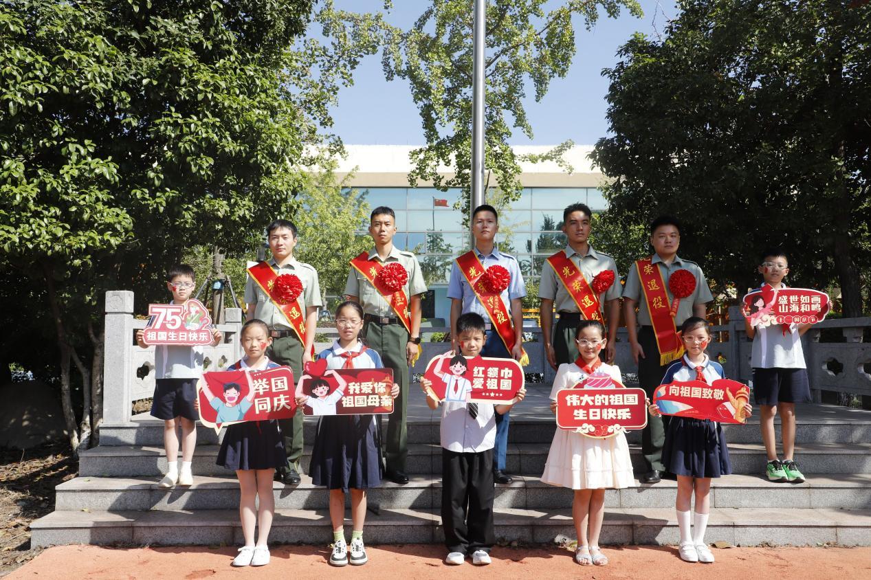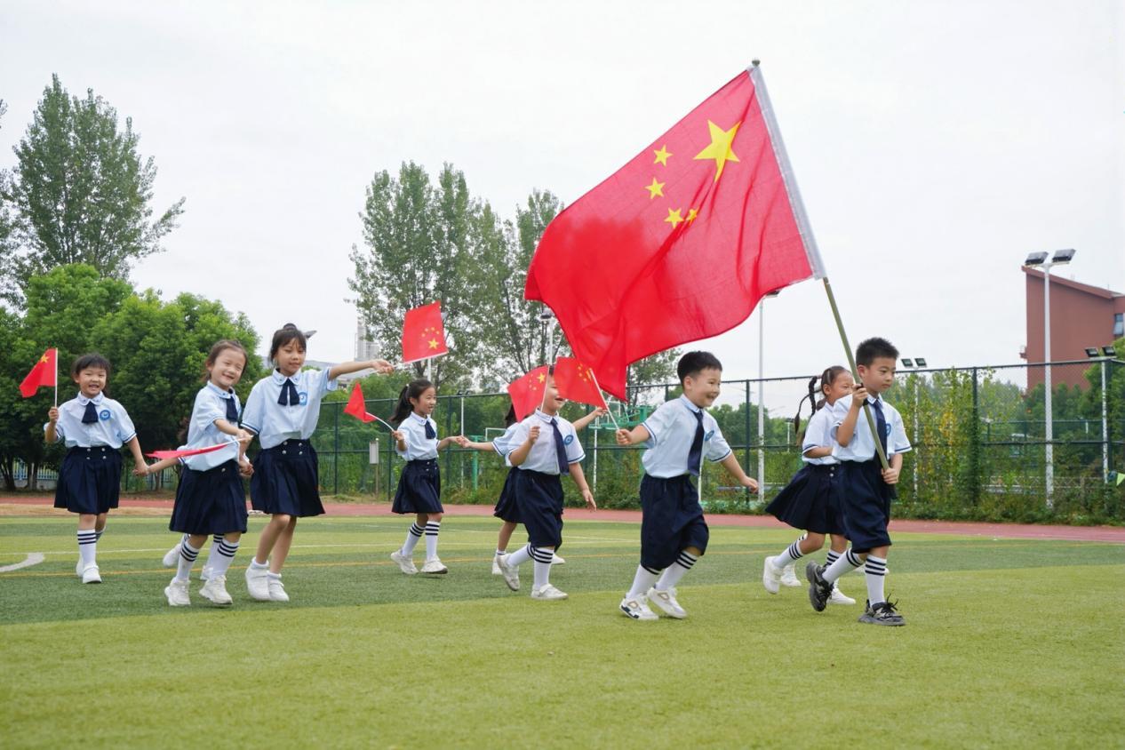 在国庆来临之际,杭州市钱塘区临江新城实验学校的孩子们满怀深情地与国旗合影,心中涌动着对祖国的无限热爱。这份爱,如同国旗上那鲜艳的红色,炽热而深沉。祖国母亲,衷心祝愿您繁荣昌盛!