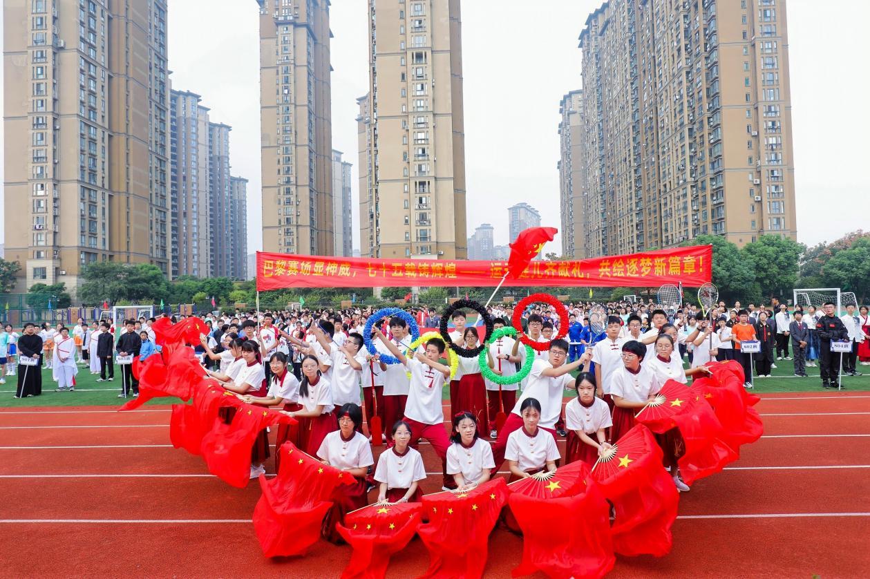 杭州市育海外国语学校的运动会开幕式上,师生以独特而富有深意的方式庆祝新中国成立75周年。神舟十号载人飞船发射升空、中国C919飞机首飞、G20峰会在中国杭州举办、五四运动爆发一百周年、中国健儿在巴黎奥运会大放异彩……每个班级化身历史使者,演绎中国新时代辉煌成就,深情致敬伟大的祖国。
