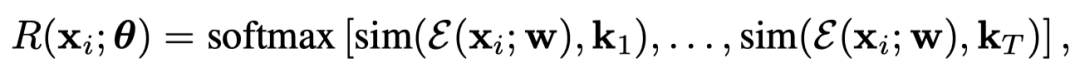 如图1所示,RouterDC包括一个较小的语言模型(mDeBERTaV3-base)作为编码器ε,和一系列的与候选LLM对应的可学习LLM嵌入kT。对于每个query xi,RouterDC生成对于T个LLMs的选择概率如下: