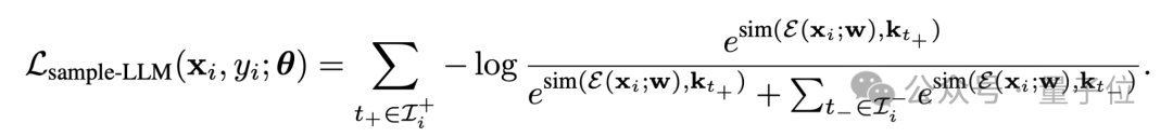 为了提升训练的鲁棒性,训练样本被聚类成不同的组,从而在训练中拉近同一个组内的样本,拉远不同组的样本。和样本-LLM对比损失类似,样本-样本对比损失可以公式化为: