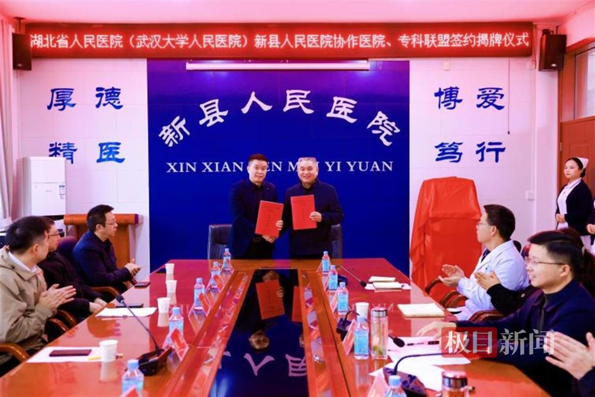 当日,河南省新县人民医院与湖北省人民医院(武汉大学人民医院)签署医联体合作协议,并授牌3个专科联盟。又一个大别山革命老区的人民群众,享受到百年红色名院的优质医疗服务。