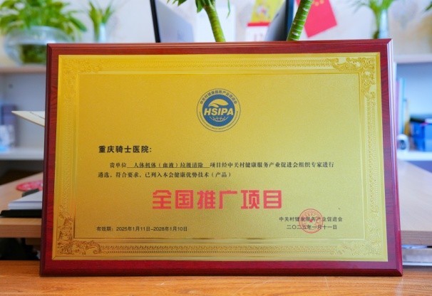 2025年1月11日,重庆骑士医院创始人唐维礼携“人体机体(血液)垃圾清除”技术参加中关村健康服务产业促进会健康优势技术(产品)全国推广项目遴选,凭借其卓越的技术优势和显著的调理效果,成功入选。