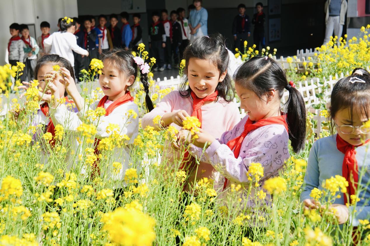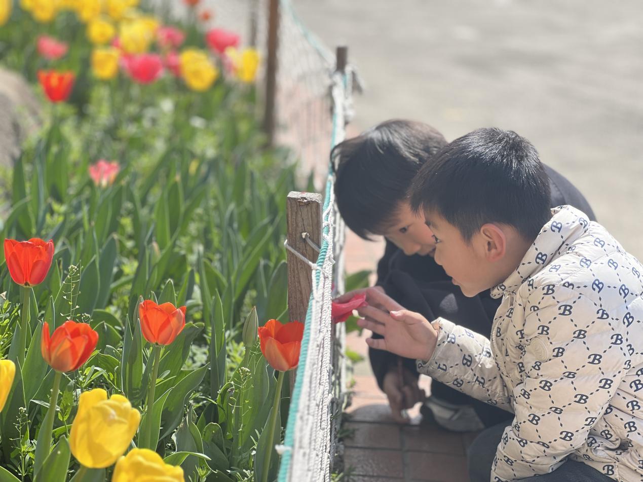 杭州市留下小学校园内郁金香迎春绽放,粉白黛紫的花朵在春风中摇曳生姿,与翠绿草坪、琅琅书声相映成趣。课间,孩子们穿梭花间观察写生,教师带领讲解花卉知识,校园化身沉浸式自然课堂。这片春日花海由师生共同养护,既美化环境又践行劳动教育,成为校园春日限定美景。