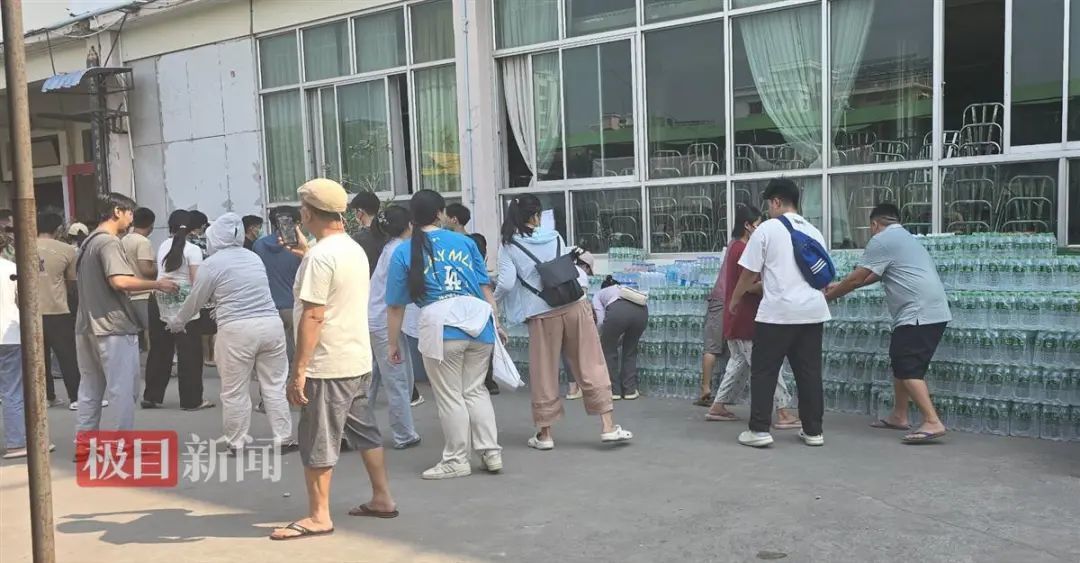 极目新闻记者注意到,不时有车辆将救灾物资送入会馆,有各种饮用水、食物,还有毛毯等。大家临时将礼堂当成仓库,将物资暂时存放于其中。