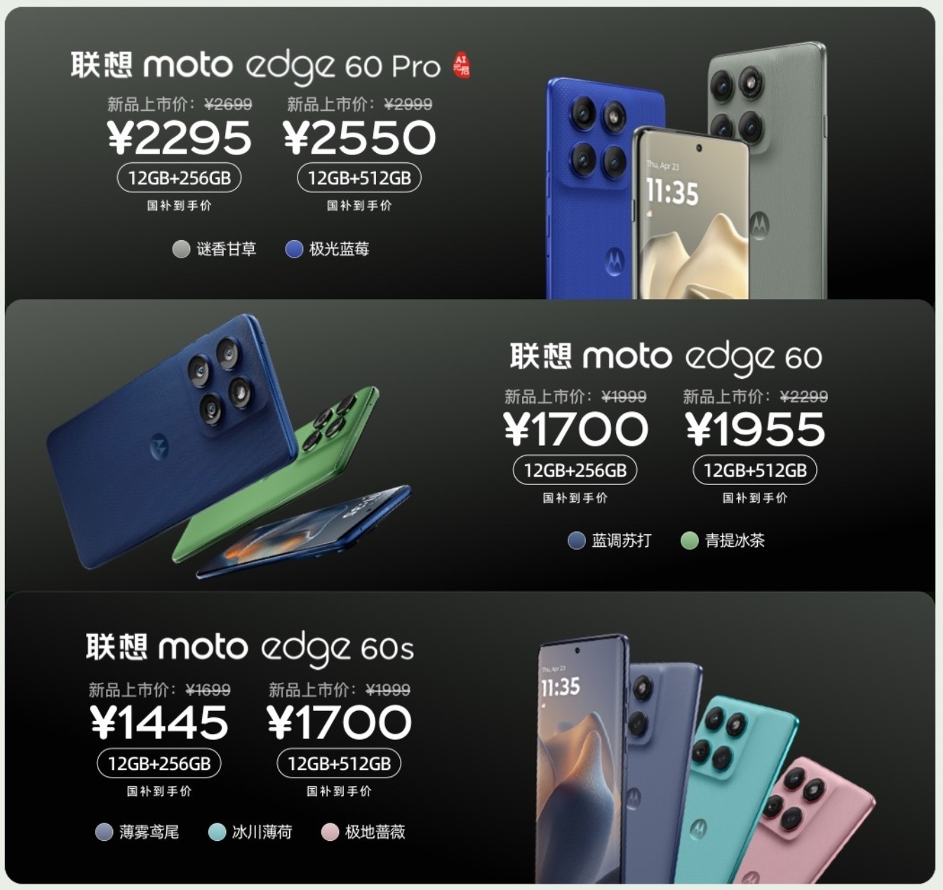 edge 60s售价:12+256GB国补价1445元;12+512GB国补价1700元。